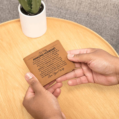 Husband Gift From Wife - For An Incredible Man - Men's Custom Bi-fold Leather Wallet - Great Christmas Gift or Birthday Present Idea