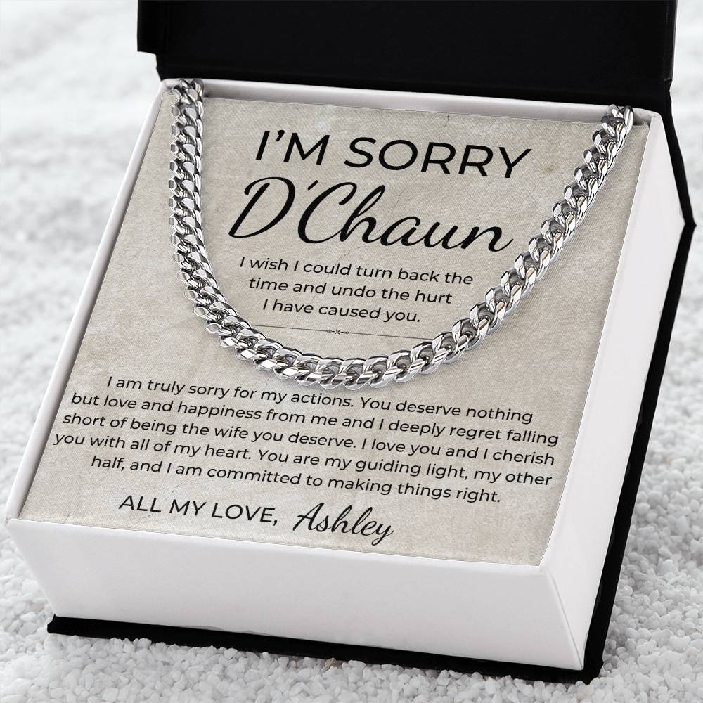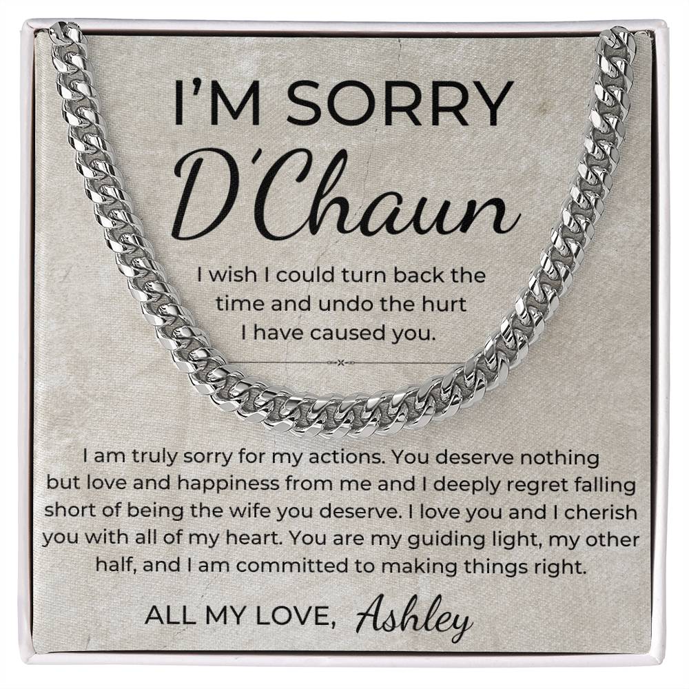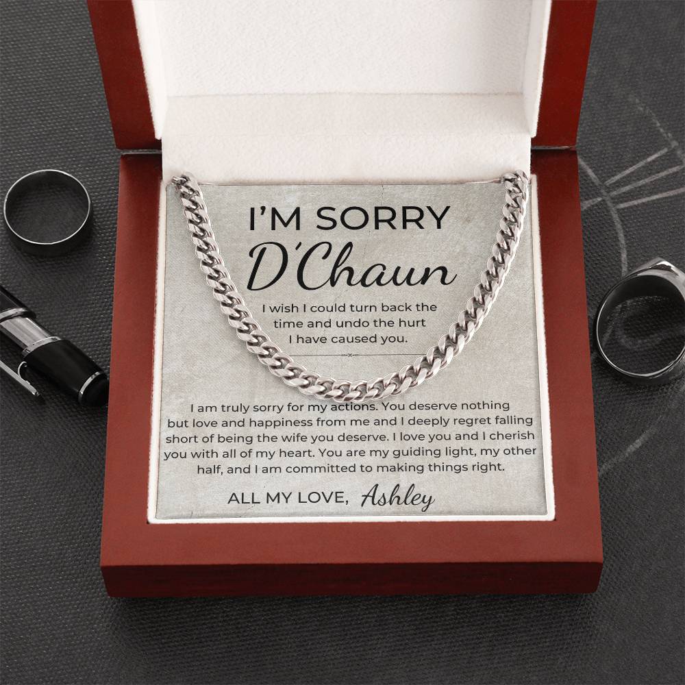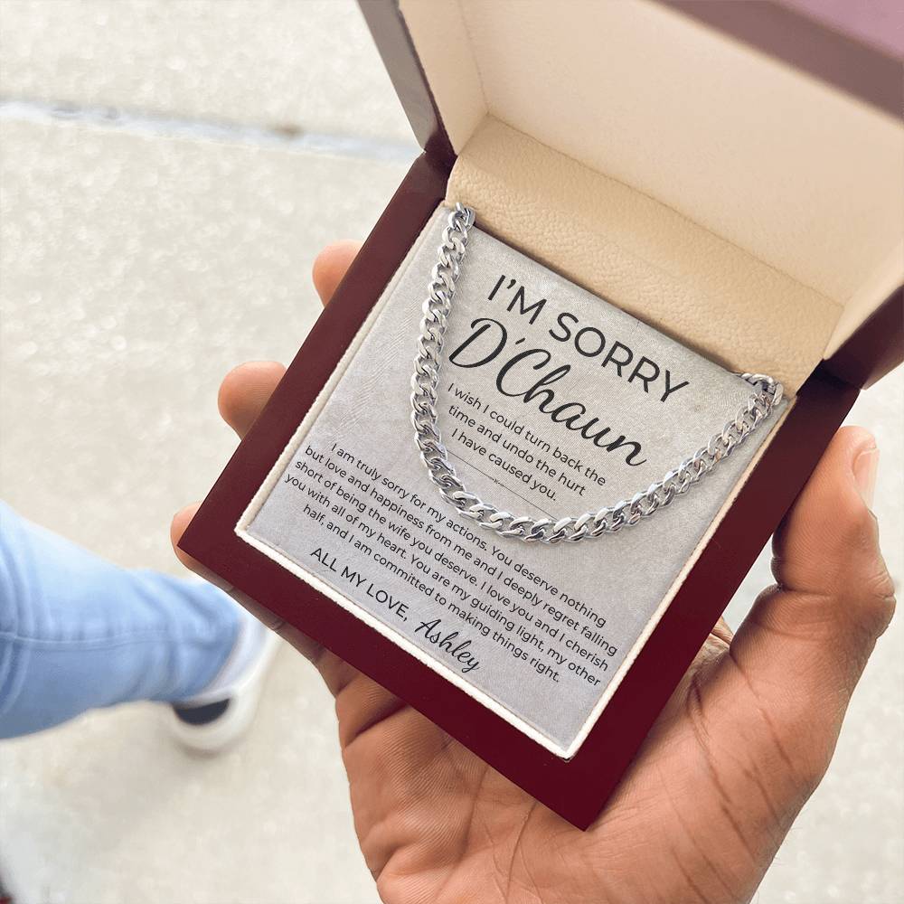 I Am Sorry - Personalized Apology Gift for Husband, From Wife - Men's Linked Chain Necklace