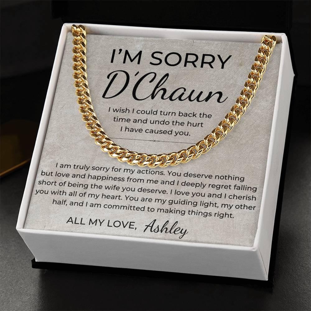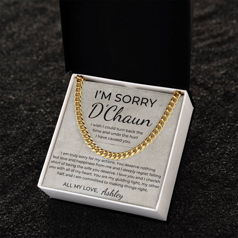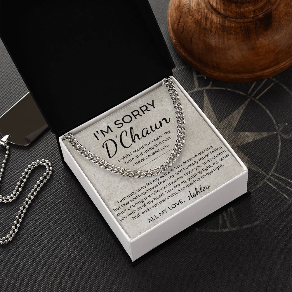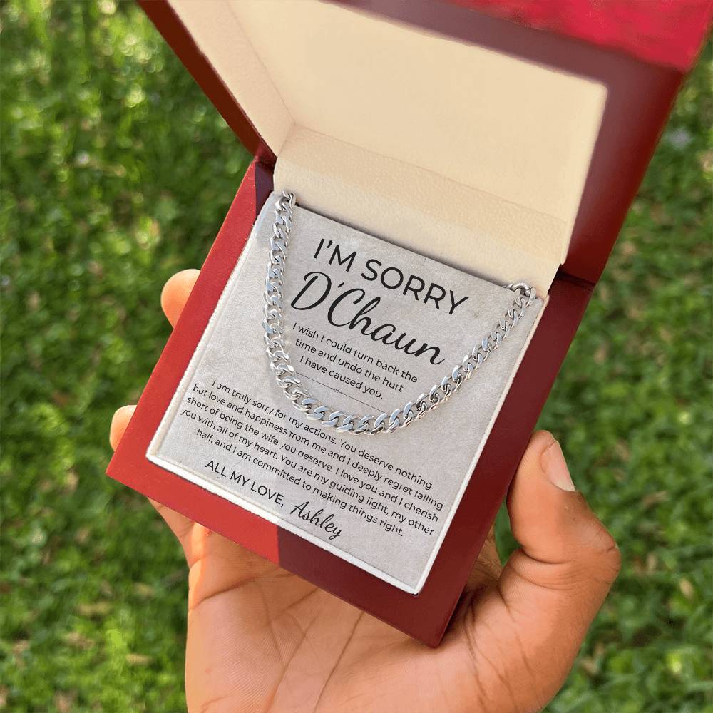 I Am Sorry - Personalized Apology Gift for Husband, From Wife - Men's Linked Chain Necklace