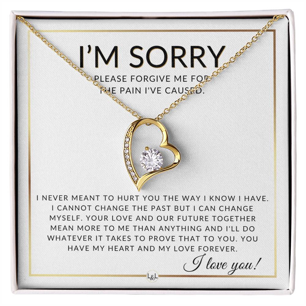 I Am Sorry Gift For Her - Please Forgive Me - Apology Gift For Wife, Fiancée, or Girlfriend - Beautiful Women's Open Heart Pendant Necklace + Heartfelt Message