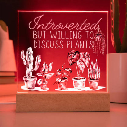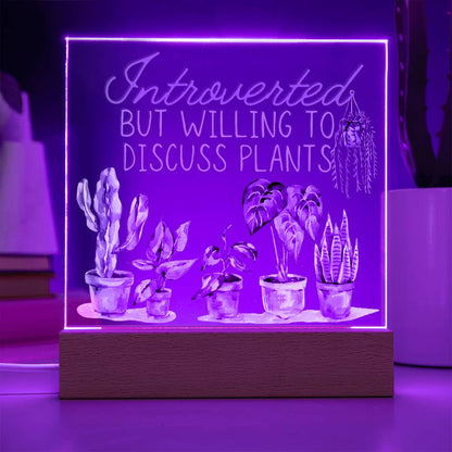 Introvertd - Funny Plant Acrylic with LED Nigh Light - Indoor Home Garden Decor - Birthday or Christmas Gift For Horticulturists, Gardner, or Plant Lover