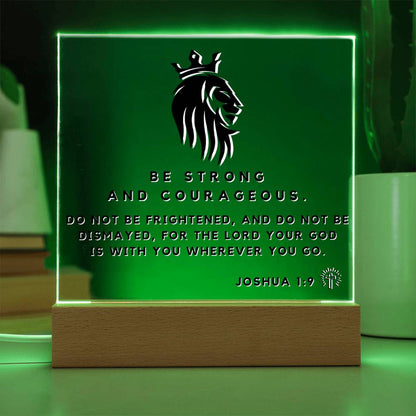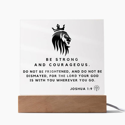 LED Bible Verse - Be Strong And Courageous - Joshua 1:9 - Inspirational Acrylic Plaque with LED Nightlight Upgrade - Christian Home Decor