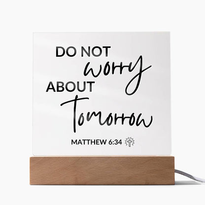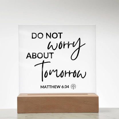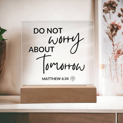 LED Bible Verse - Do Not Worry - Matthew 6:34 - Inspirational Acrylic Plaque with LED Nightlight Upgrade - Christian Home Decor