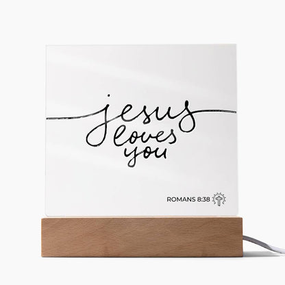 LED Bible Verse - Jesus Loves You - Romans 8:38 - Inspirational Acrylic Plaque with LED Nightlight Upgrade - Christian Home Decor