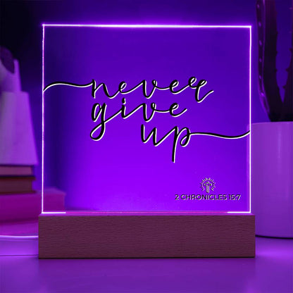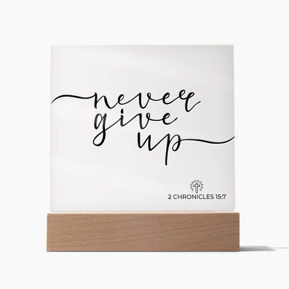 LED Bible Verse - Never Give Up - 2 Chronicles 15:7 - Inspirational Acrylic Plaque with LED Nightlight Upgrade - Christian Home Decor