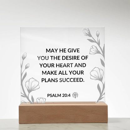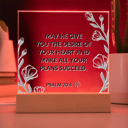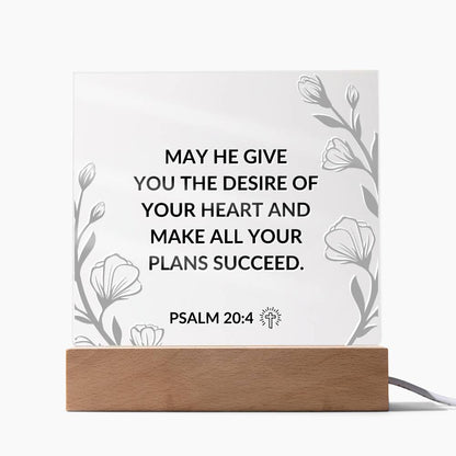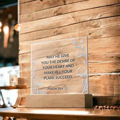 LED Bible Verse - The Desires Of Your Heart - Psalm 20:4 - Inspirational Acrylic Plaque with LED Nightlight Upgrade - Christian Home Decor