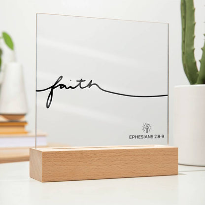 LED Bible Verse - Through Faith - Ephesians 2:8-9 - Inspirational Acrylic Plaque with LED Nightlight Upgrade - Christian Home Decor
