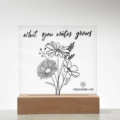 LED Bible Verse - Your Thoughts Matter - Proverbs 4:23 - Inspirational Acrylic Plaque with LED Nightlight Upgrade - Christian Home Decor