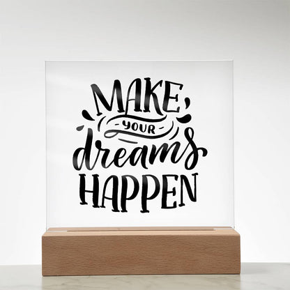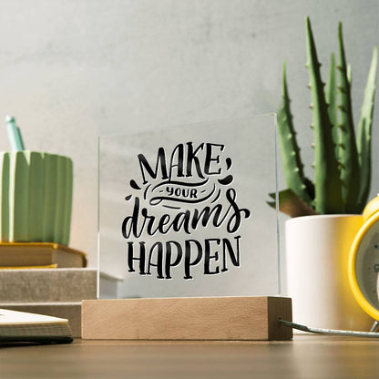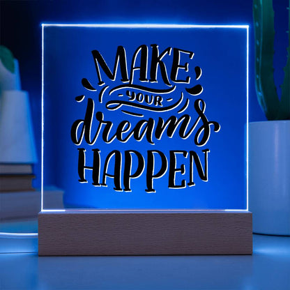 Make Your Dream Happen - Motivational Acrylic with LED Nigh Light - Inspirational New Home Decor - Encouragement, Birthday or Christmas Gift