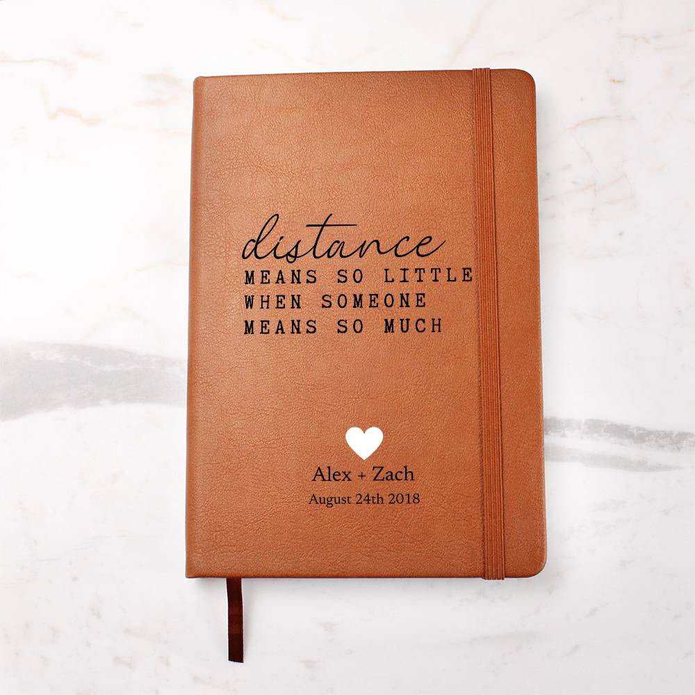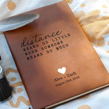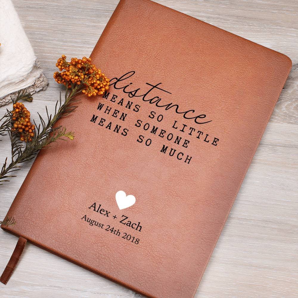 Personalized Leather Journal - Distance Means So Little - Custom Leather Notebook For Long Distance Relationships - Wedding or Anniversary Gift - Love Letters, Memory Book