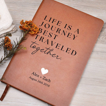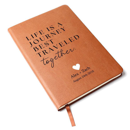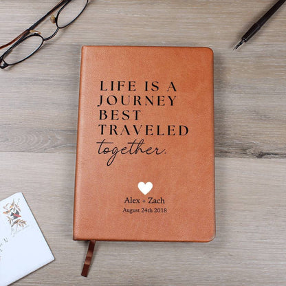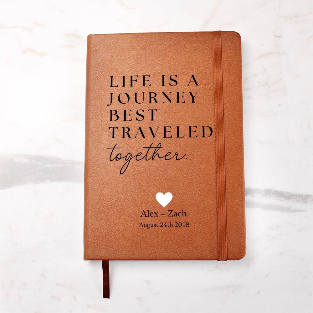 Personalized Leather Journal - Life Is A Journey - Custom Leather Notebook For The One You Love - Wedding or Anniversary Gift - Love Letters, Memory Book