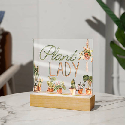 Plant Lady - Funny Plant Acrylic with LED Nigh Light - Indoor Home Garden Decor - Birthday or Christmas Gift For Horticulturists, Gardner, or Plant Lover