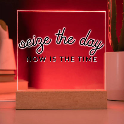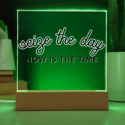 Seize The Day - Motivational Acrylic with LED Nigh Light - Inspirational New Home Decor - Encouragement, Birthday or Christmas Gift