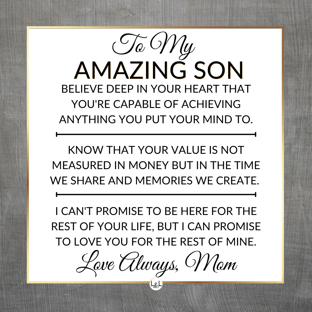 Looking for a unique gift idea for yourson? Our Men's Braided Leather Bracelet with a special message just for your son makes for a great thoughtful gift for him for Christmas, his birthday or to celebrate a special occasion like graduation. Engraved with a heartfelt "love you forever", this son gift is not just an accessory; it is a daily reminder of the love you have for him.
