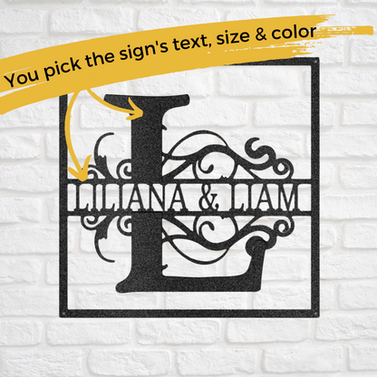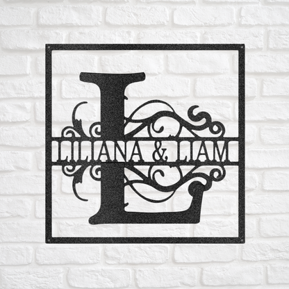Split Square with Simple Initial Letter - Metal Sign, Family Name Sign, Initial Wall Decor, Front Porch Name Sign