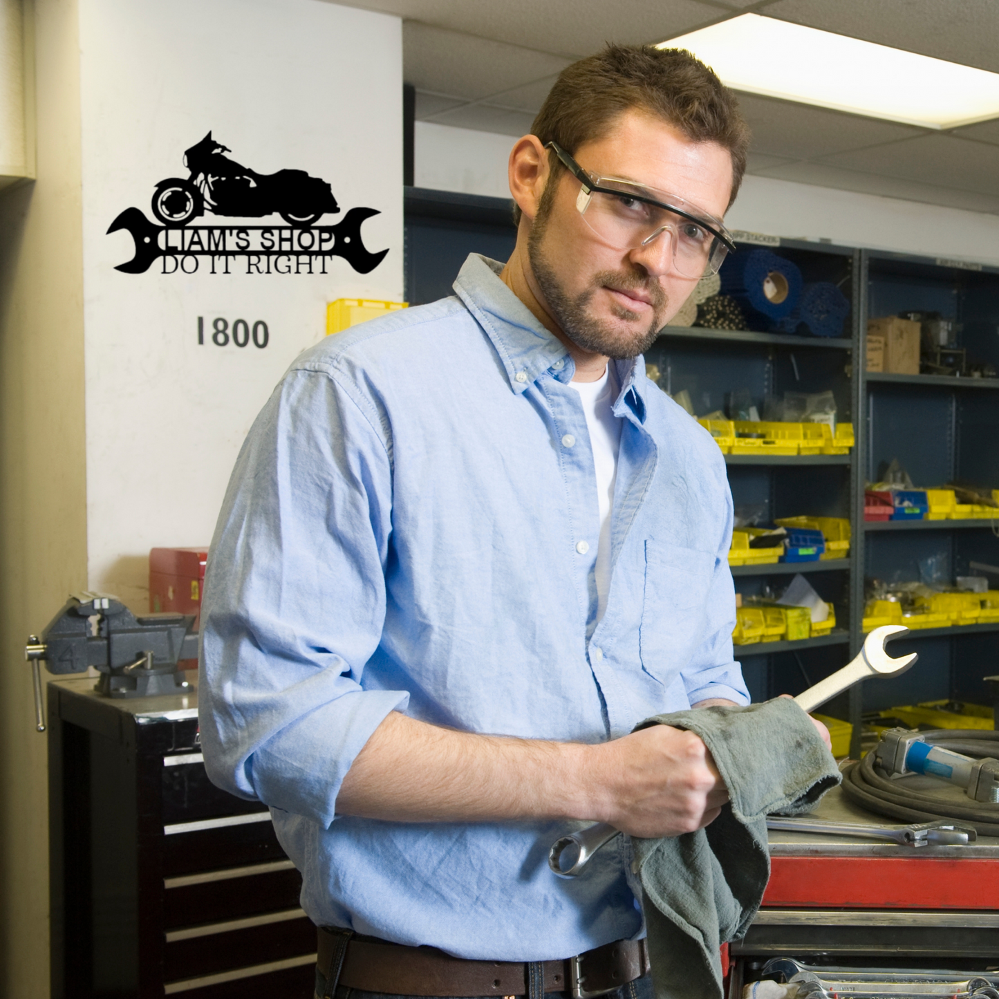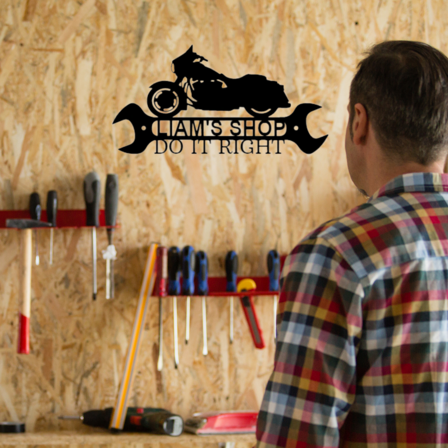 Motorcycle Sign - Personalized Metal Sign - Street Glide Shop Monogram with a Wrench