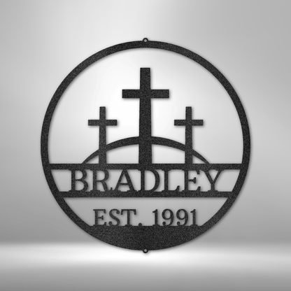 Three Crosses On A Hill - Custom Metal SIgn - Christian Metal Wall Art, Christian Decor