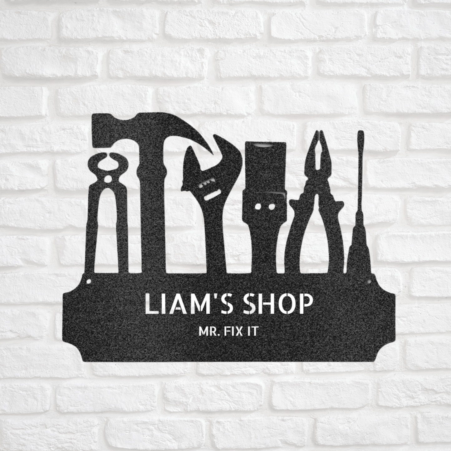 Shop Tools - Personalized Workshop Sign, Custom Garage Sign, Workshop, Man Cave Decor, Large Metal Sign