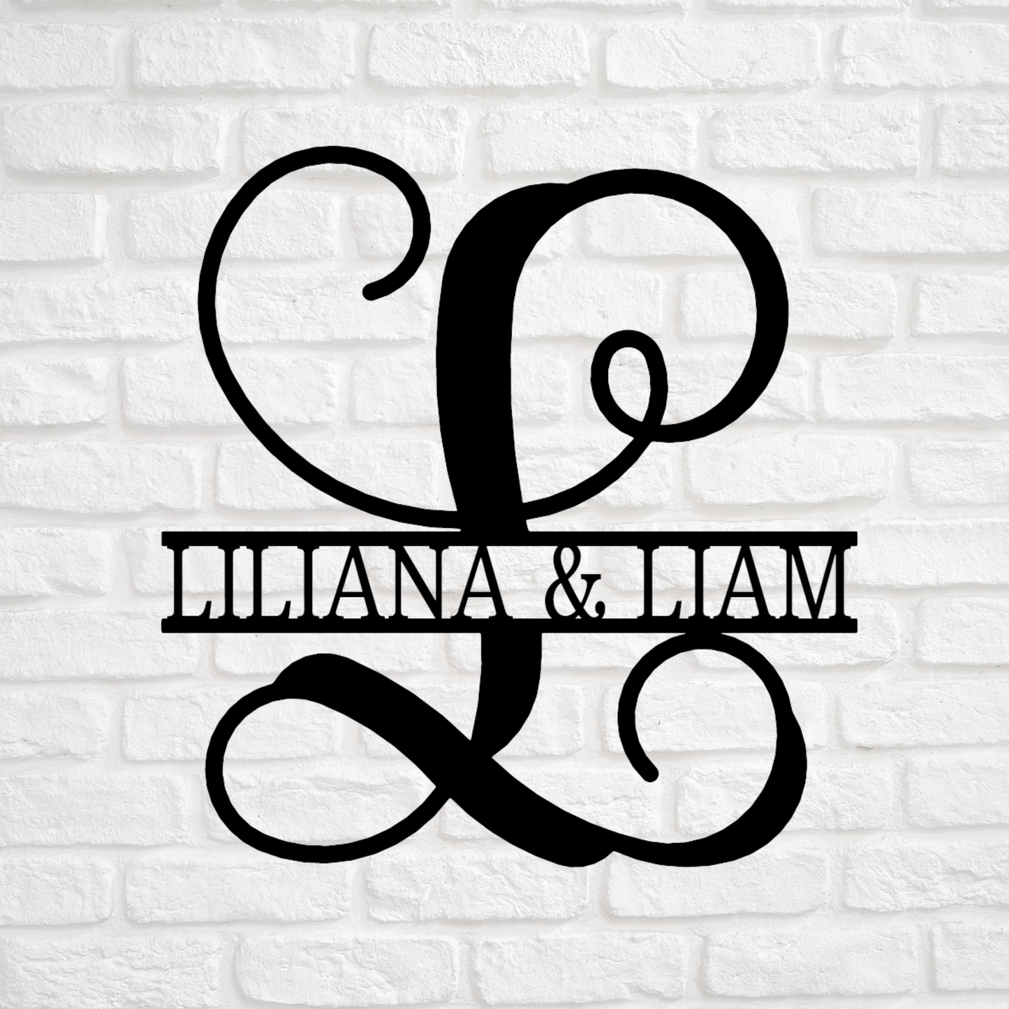 Fancy Split Initial Letter - Metal Sign, Family Name Sign, Initial Wall Decor, Front Porch Name Sign
