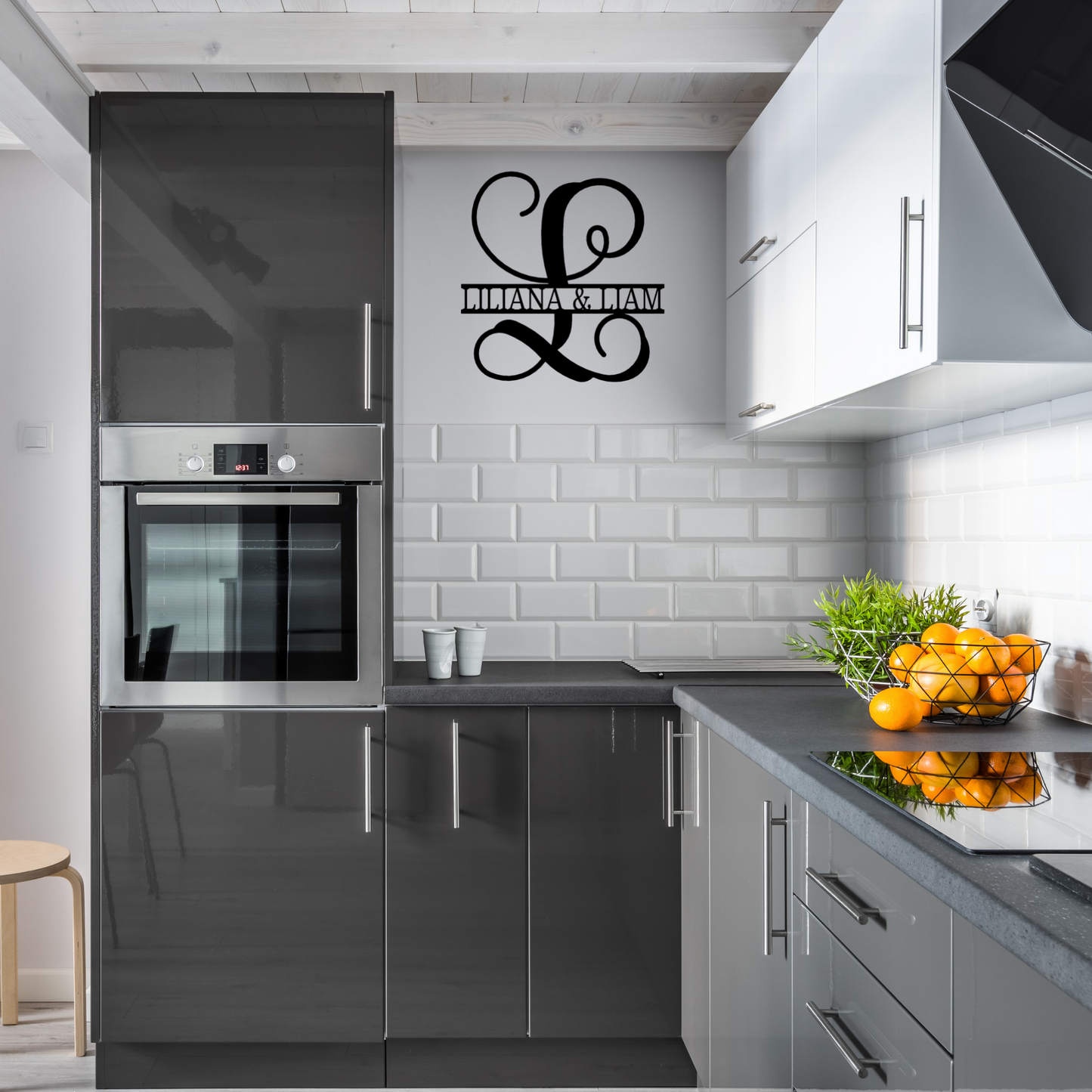 Elevate any home with this steel family name sign. The personalized split letter monogram provides that added touch making this the perfect wedding or housewarming gift.