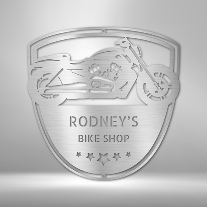 This customized steel sign on a shop or garage wall would make any rider proud! Our Street Bike Plaque Monogram allows the biker in your life to show off their attachment to their bike with the customized text lines strategically positioned on the sign! Two lines of text offer lots of options: first names, family names, bike names, or other short highlight text front and center!